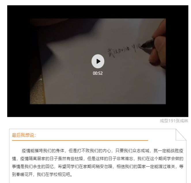 第三期的主题是“用心战疫篇”。活动针对全体学生,通过让同学们分享日常生活来了解同学们在家隔离期间的情况,充分调动学生的积极性和主动性,避免因居家时间过长而产生心理问题。活动过程中,心协了解到许多同学在家都尝试做了一些有意义且有意思的事情,每个人都在尽自己的绵薄之力,让国家早日好起来。