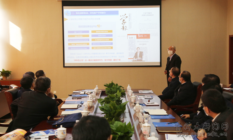 校长陈克正作了《青岛科技大学以政产学研融合提升服务青岛贡献度》专题汇报,重点从“强化资源整合,推进一流学科建设”“强化教学改革,提高人才培养能力”“强化创新驱动,深化政产学研融合”“推动成果转化,增强服务青岛能力”等四个方面汇报了学校学科专业建设、人才培养、产学研发展、校地合作等方面的情况,并对下一步主动对接青岛战略规划、服务青岛经济社会发展提出了设想与打算。