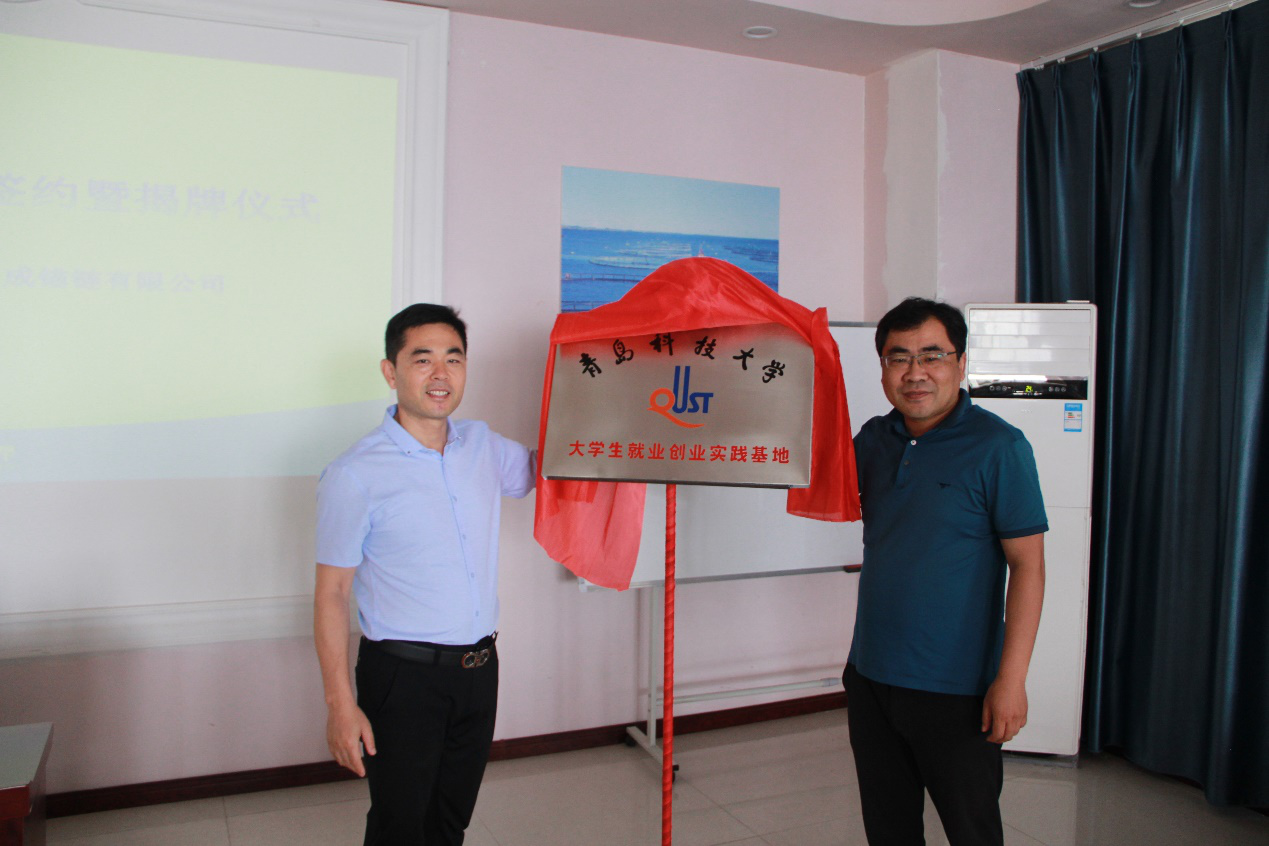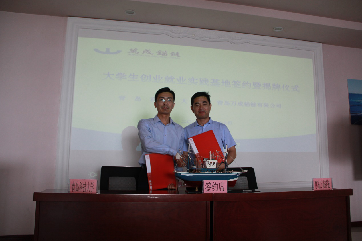 6月17日,青岛科技大学机电工程学院、青岛万成锚链有限公司共建大学生就业创业实践基地揭牌仪式在万成锚链公司举行举行。青岛科技大学机电工程学院党委书记孙立军、青岛万成锚链有限公司董事长仲辉、学院党委副书记肖强、副院长张卫锋、万成锚链执行总经理王吉强,副总经理、业务中心经理马静、行政人事部经理山长海、销售大区经理宋修鹏等出席签约揭牌仪式。