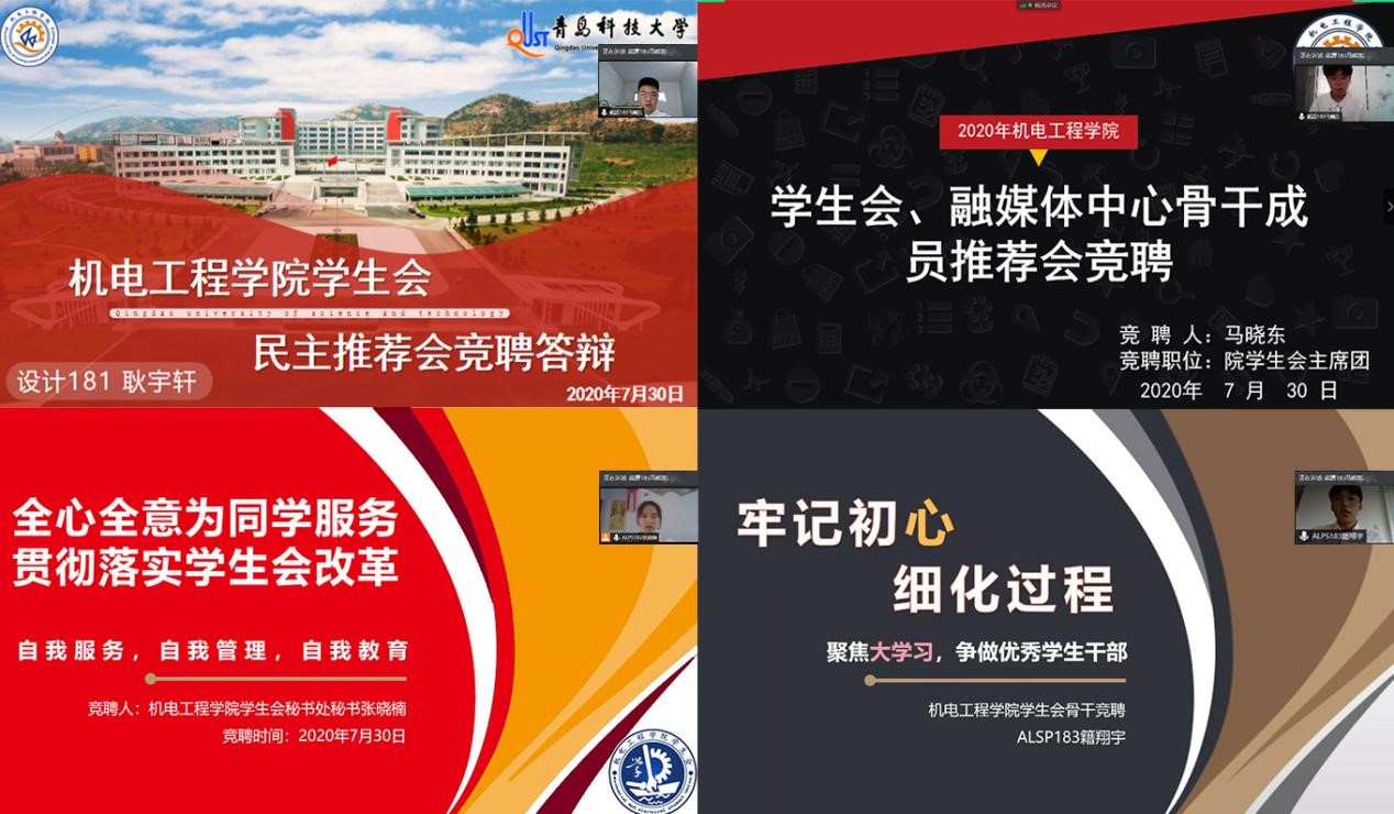 7月30日下午,机电工程学院2020-2021学年学生会、融媒体中心骨干成员民主推荐会在机电楼518会议室顺利举行。机电学院分团委书记王作辉及分团委全体老师、第十九届学生会主席团成员、竞聘人员参加了推荐会。第十九届学生会主席罗浩宇主持会议。