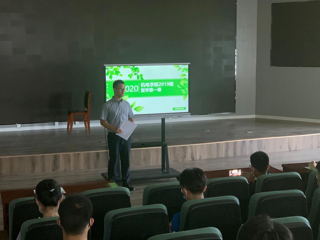 8月28日,机电工程学院2019级辅导员在机电大楼530会议室召开“复学第一课”年级会议,采取网络直播的形式线上与线下同时进行。学院2019级全体学生参与会议,会议由曲智强、郭佩佩、邢坤主持。
