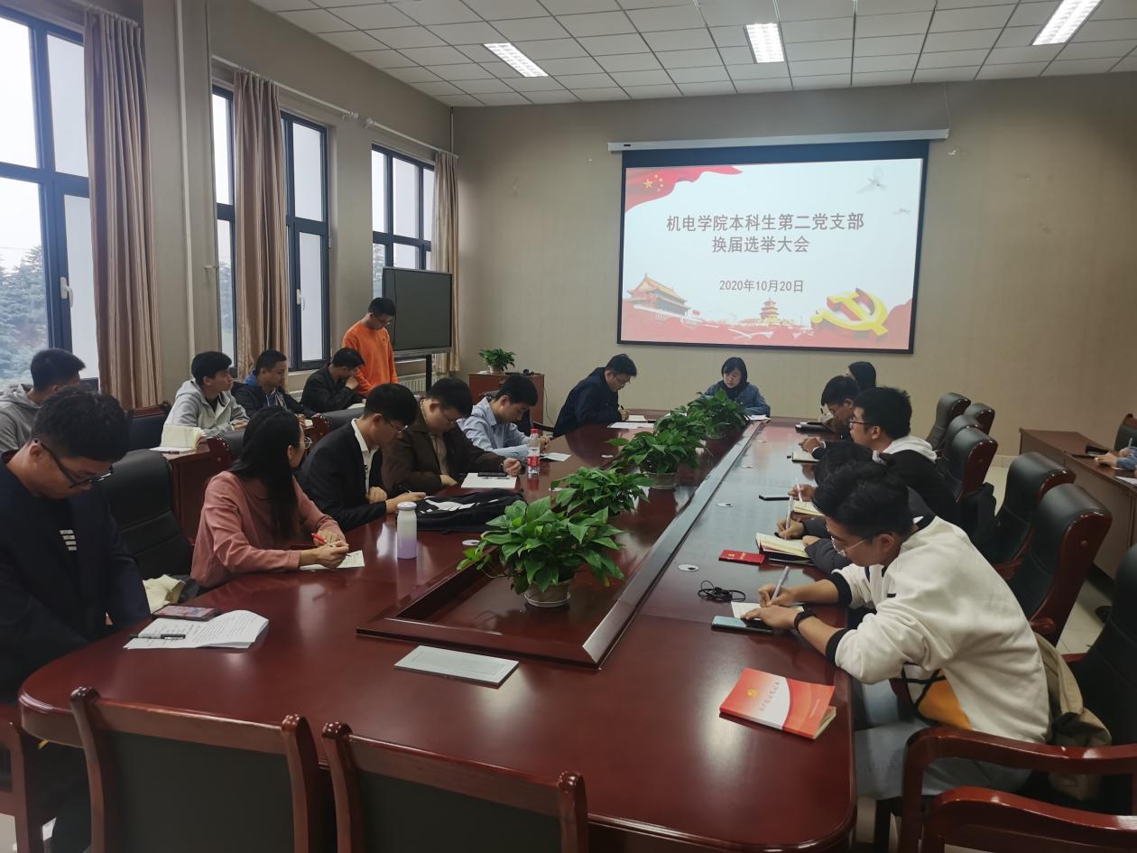 10月20日下午,机电学院本科生第二党支部换届选举大会在机电楼518会议室举行。本科生第二党支部全体党员参加大会,大会由支部书记王娟娟主持。