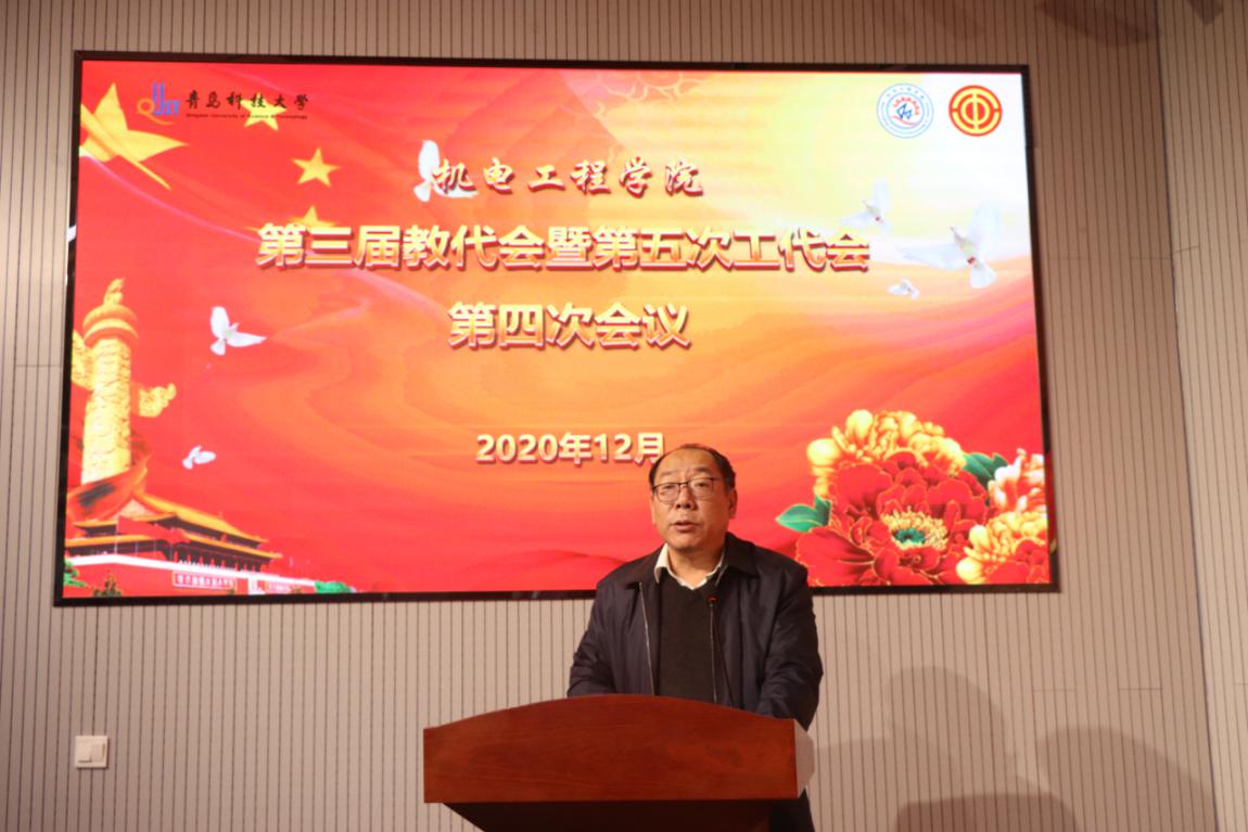 会上,学院工会主席付平老师受工会委员会委托,向大会做了工作汇报。大会审议并通过了《机电工程学院工作报告》《机电工程学院工会工作报告》及《青岛科技大学机电工程学院合作办学类创收分配办法》。