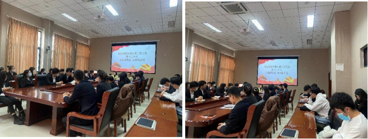 为深入贯彻落实党的二十大精神,紧跟党中央的步伐,11月25日,机电学院本科生第二党支部全体党员在机电大楼518开展了“学习二十大 永远跟党走 奋进新征程”为主题的党日活动,出席会议的有本科生第二党支部书记王娟娟老师、副书记王玉凯老师,同时组织委员郭佩佩老师线上参加了此次会议。