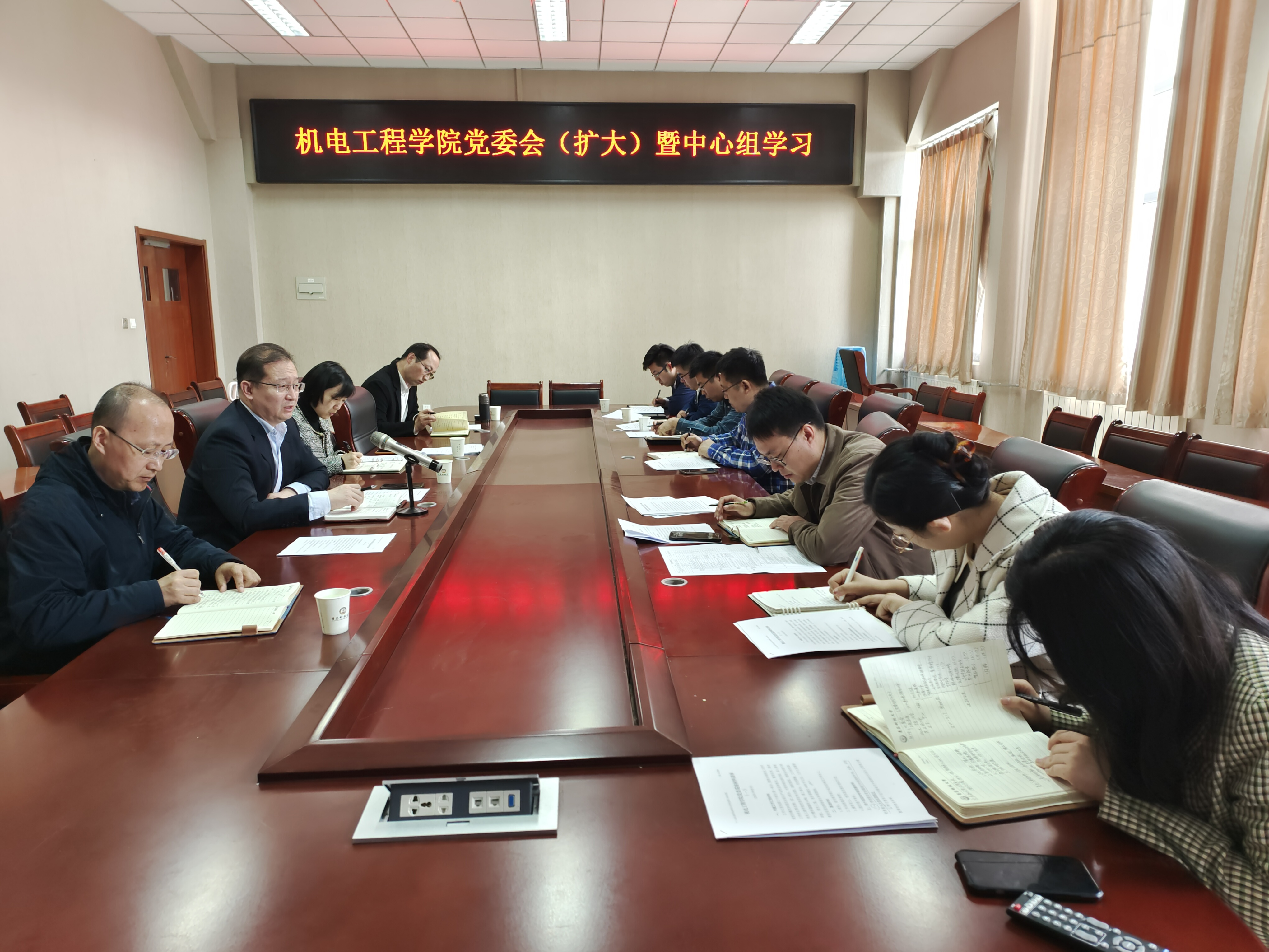 4月14日上午,机电工程学院党委在机电楼518会议室召开学院党委理论学习中心组(扩大)学习会传达学习贯彻习近平新时代中国特色社会主义思想主题教育动员部署会精神。学院党委理论学习中心组成员、党支部书记及部分专职辅导员参加会议,会议由学院党委书记任允晓主持。