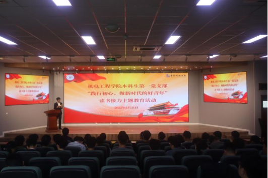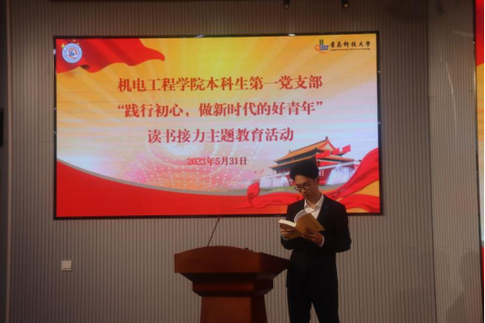 为扎实开展学习贯彻习近平新时代中国特色社会主义思想主题教育,筑牢信仰之基、补足精神之钙、把稳思想之舵机电工程学院本科生第一党支部开展了“践行初心,做新时代的好青年”读书接力主题教育活动。本次会议由本科生第一党支部书记于超主持,全体党员同志参加。