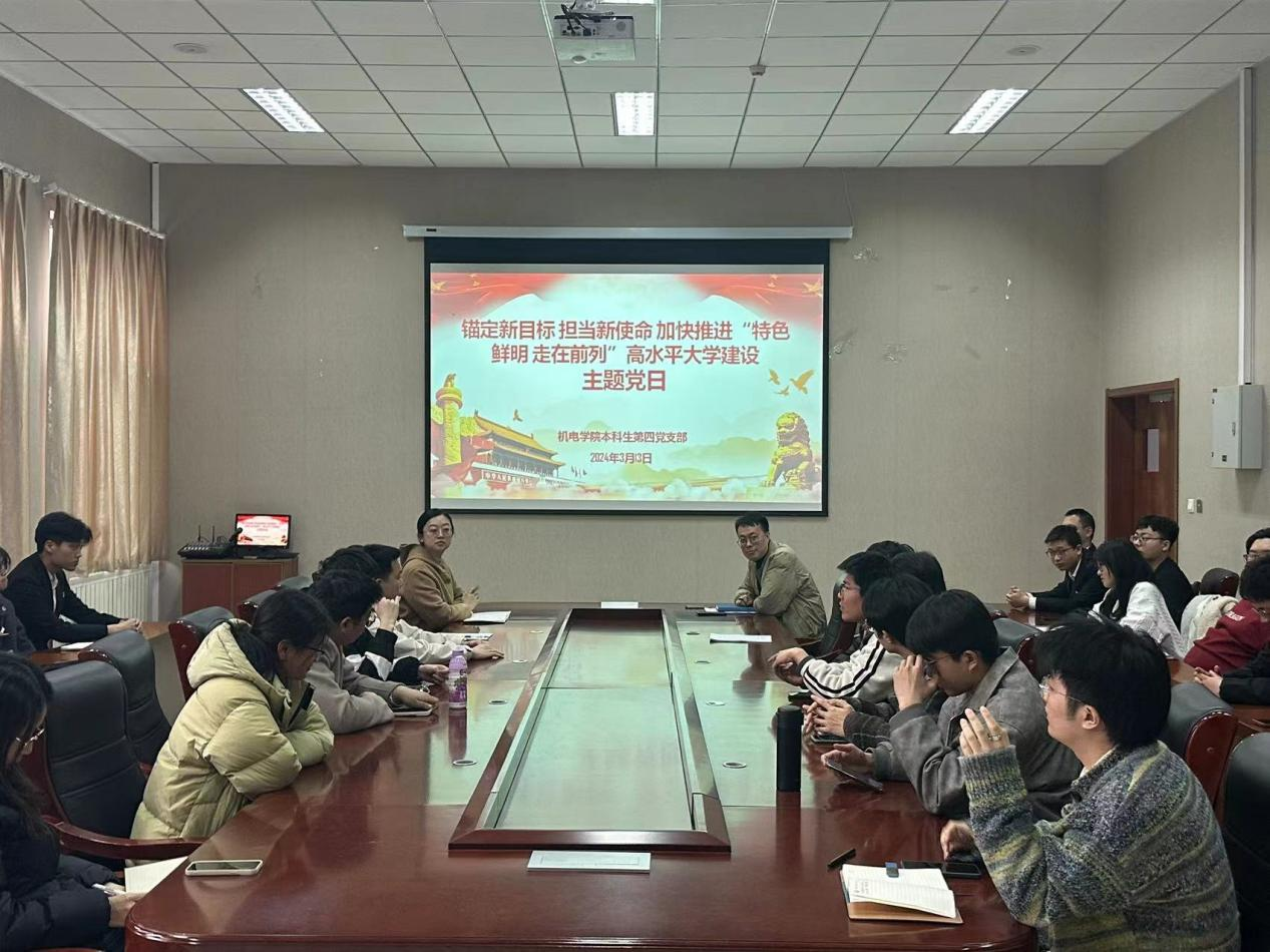 3月13日,机电工程学院本科生第四党支部召开“锚定新目标,担当新使命,加快推进‘特色鲜明、走在前列’高水平大学建设”主题党日活动。
