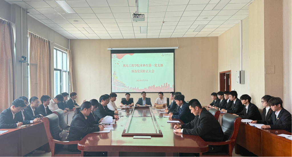 5月27日上午,机电工程学院本科生第一党支部于机电楼518会议室召开了预备党员接收大会。本次会议由党支部书记于超主持,应到正式党员33名,实到会33名。
