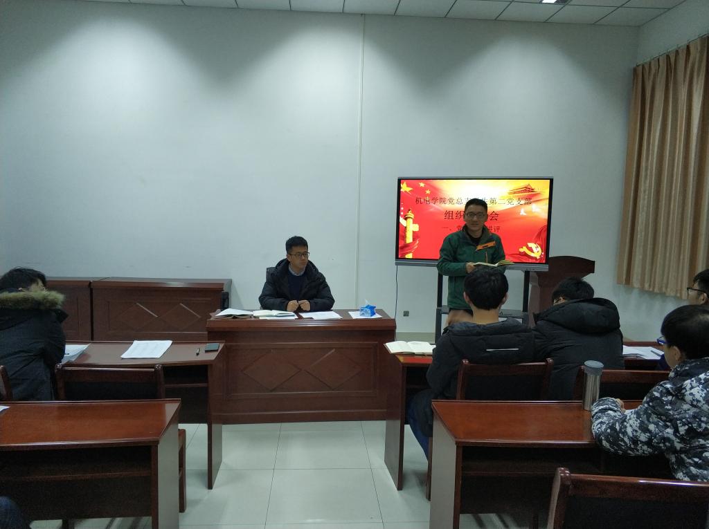 按照学校党委组织部《关于召开基层党支部组织生活会及2018年度党内评议评优工作的通知》要求,1月4日下午,机电学院党总支学生第二党支部在机电楼529会议座召开2018年度组织生活会。会议由党支部书记曲智强老师主持。