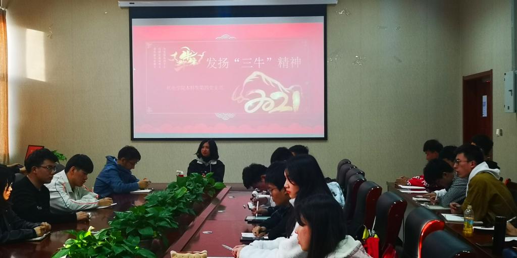 3月23日,结合习近平总书记日前在全国政协新年茶话会上的讲话精神,机电学院本科生第四党支部召开“发扬”三牛”精神,凝心聚力干事,全面开创学校高质量发展新局面”主题党日活动。会议由党支部书记孙坤岩主持。