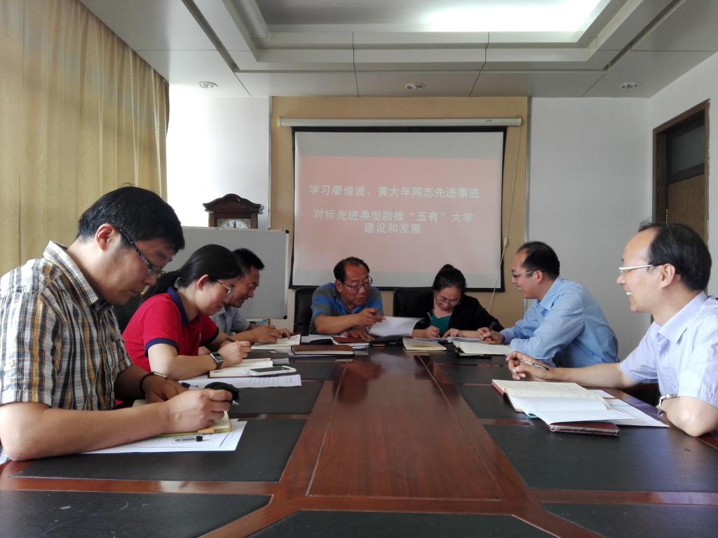 中心组集中学习了廖俊波和黄大年同志的先进事迹。孙立军提出要学习先进事迹,对标先进典型,助推“五有”大学的建设和发展,一是在思想上对标,学习他们坚定信念、对党忠诚的政治品格,凝聚学院改革发展动力;二是在发展上对标,学习他们敢于担当、锐意进取的实干精神,发挥党员干部主力军作用;三是在服务上对标,学习他们心系群众、造福一方的为民情怀,切实履行学院的责任担当;四是在作风上对标,学习他们无私奉献、克己奉公的清廉本色,打造风清气正的政治生态。