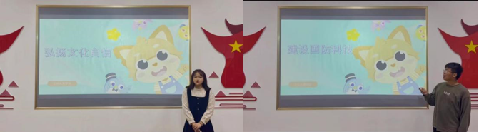 本次活动增强了同学们对优秀文化和国防成就的认识,让同学们充分了解文化自信和国防科技力量的强大,增强了同学们的民族自信心,在同学们心中播种下保卫祖国的种子。在课程的最后,志愿者们还为同学们精心准备物理小实验,让课堂更加生动有趣,让同学们更容易的接受物理知识。