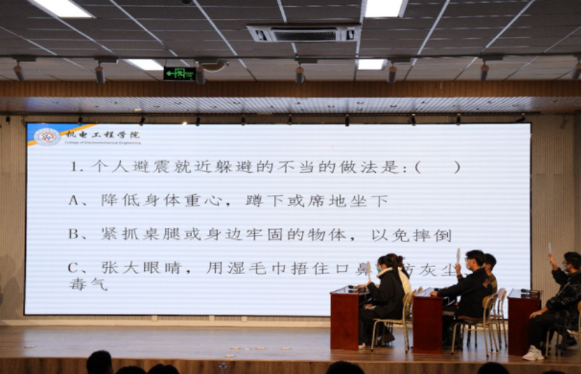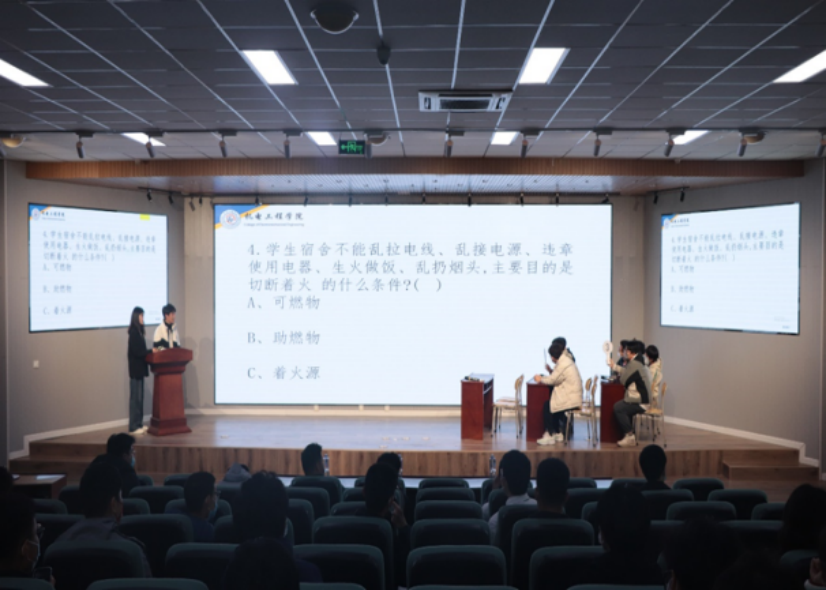 机电工程学院于11月20日举办的“机寓青春 智享生活”主题宿舍文化节知识竞赛。本次知识竞赛共分为两个环节,参赛选手以小组抢答形式分为10组进行比赛。在比赛过程中,各组参赛选手沉着冷静、临危不乱,积极踊跃答题,充分展示了扎实的知识功底和条理清晰的思考能力。