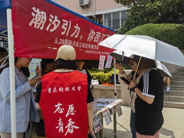 为了呼吁同学们加大对女性健康、经期健康的关注。2023年5月28日,青岛科技大学卫生巾互助盒活动负责人和青岛科技大学机电工程学院微尘志愿者协会在南苑餐厅东门口联合举办“潮汐引力,你我汇聚”系列活动。