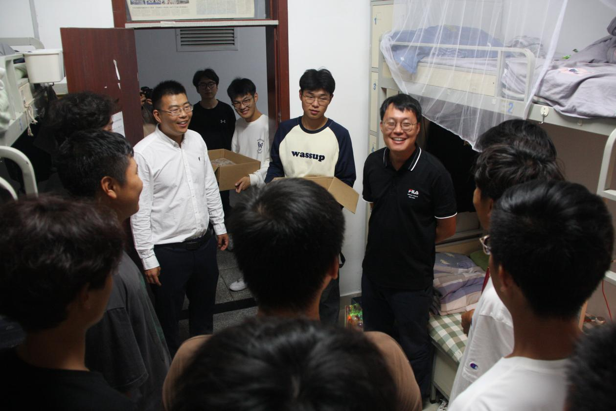学院团委大一新生辅导员邢坤老师、杜康老师、崔瑛老师走进宿舍,向新生表达了节日祝福并送去青科大定制月饼,让同学们在中秋佳节之际感受家的氛围。走访中,邢坤老师、杜康老师、崔瑛老师与同学们亲切交谈,热切关心大一新生大学生活适应情况,鼓励同学们要不怕苦、不怕累,认真锻炼、提高身体素质,助力“爱体育兴科大”校园文化建设。勉励同学们要努力学习、掌握正确学习方法、多去图书馆读书扩展视野,为未来考研、工作做好人生规划。要严格遵守学校的规章制度,时刻把安全放在第一位。宿舍里洋溢着师生间的浓浓情意,荡漾着节日里的温馨祝福。