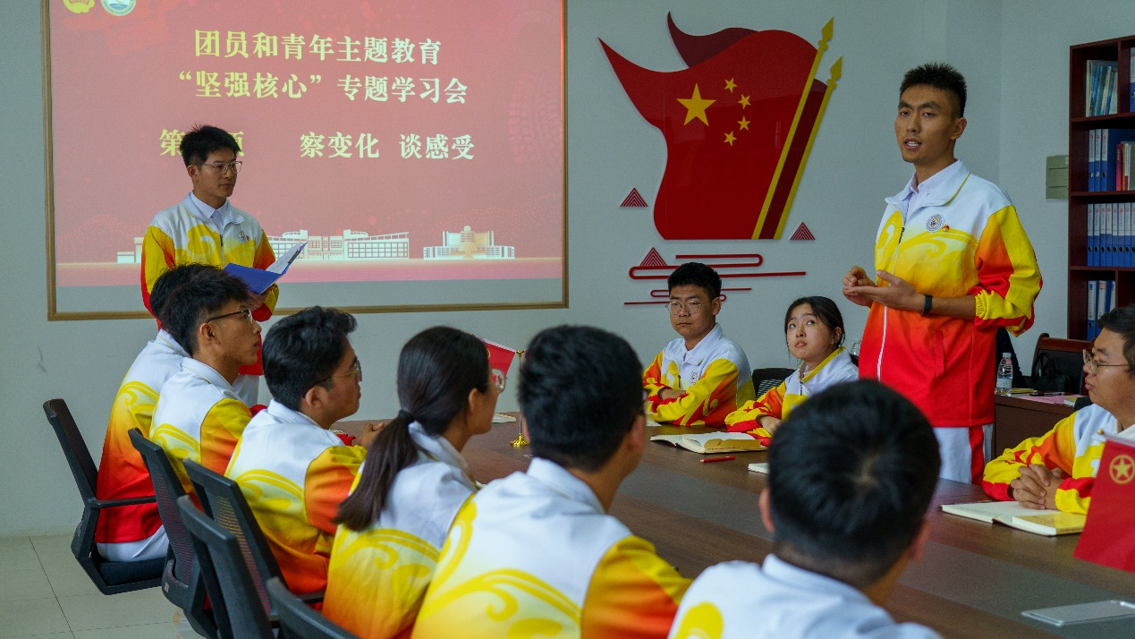 “察变化 谈感受”。团员青年们围绕新时代十年的伟大变革,结合自己的亲身经历,对这十年中周围发生翻天覆地的变化展开讨论,大家分别从国家、社会和个人三个层面切入,具体讨论了国家政策、强军战略、农村道路、粮食产量、交通变化以及学校发展等方面的变化。
