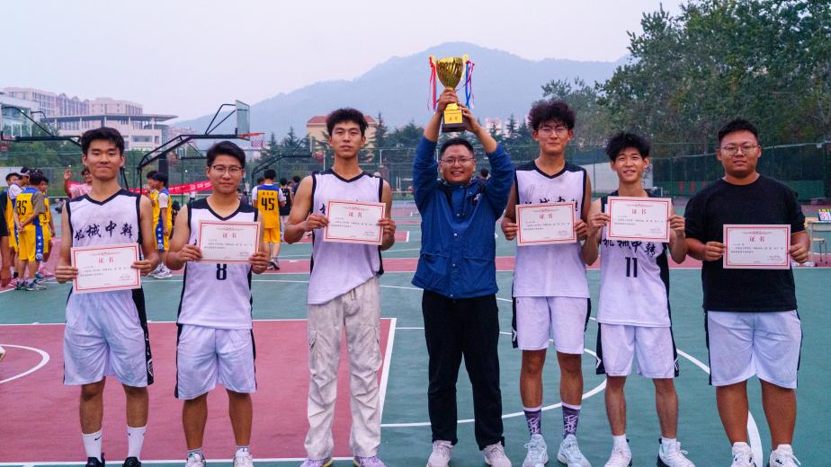 随着终场哨音响起,本次迎新杯篮球赛圆满落幕。经过一周激烈的角逐,最终比赛结果如下:冠军能源专业队,亚军机械中韩专业队,季军储能智造联队。比赛结束后由机电工程学院团委胡福超、周韫涵、李亚杰分别为获奖队伍颁奖。