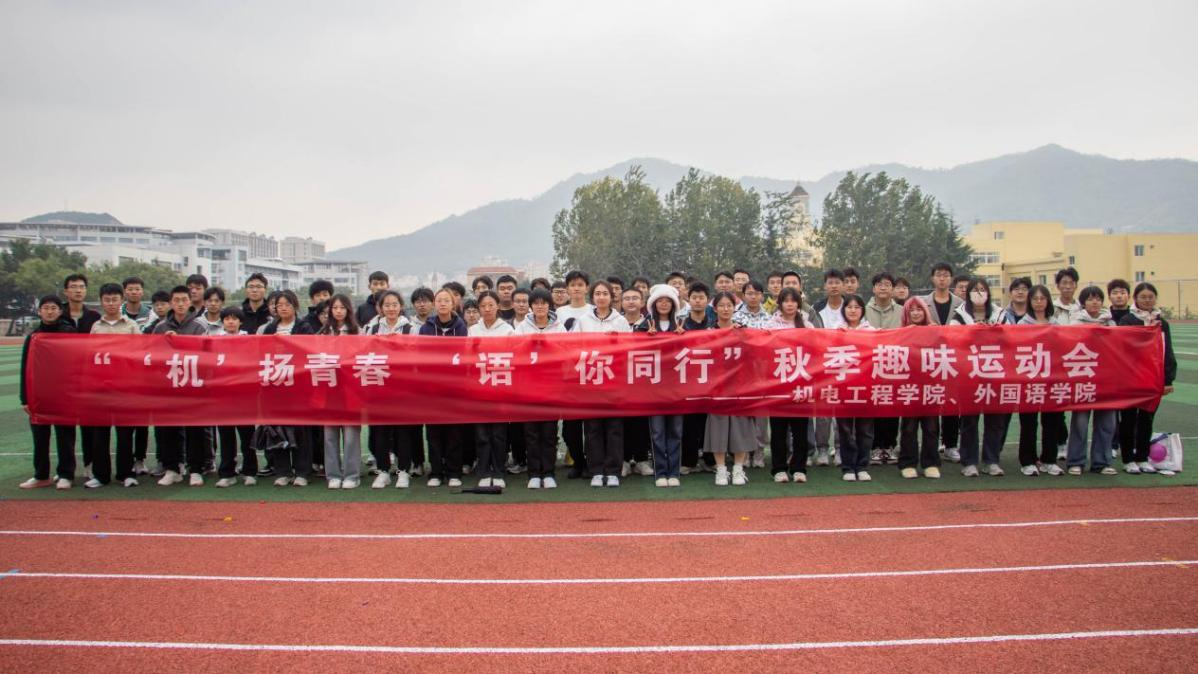 秋日的暖阳,映洒着我们的笑容。欢乐的乐曲,激荡着我们的心灵。为充分调动学生积极性同时培养学生团队意识,助力学生在体育锻炼中享受乐趣、增强体质、健全人格、锤炼意志。10月22日,机电学院与外国语学院共同举办趣味运动会。机电学院、外语学院相关领导、辅导员及各年级300余名学生参加活动。