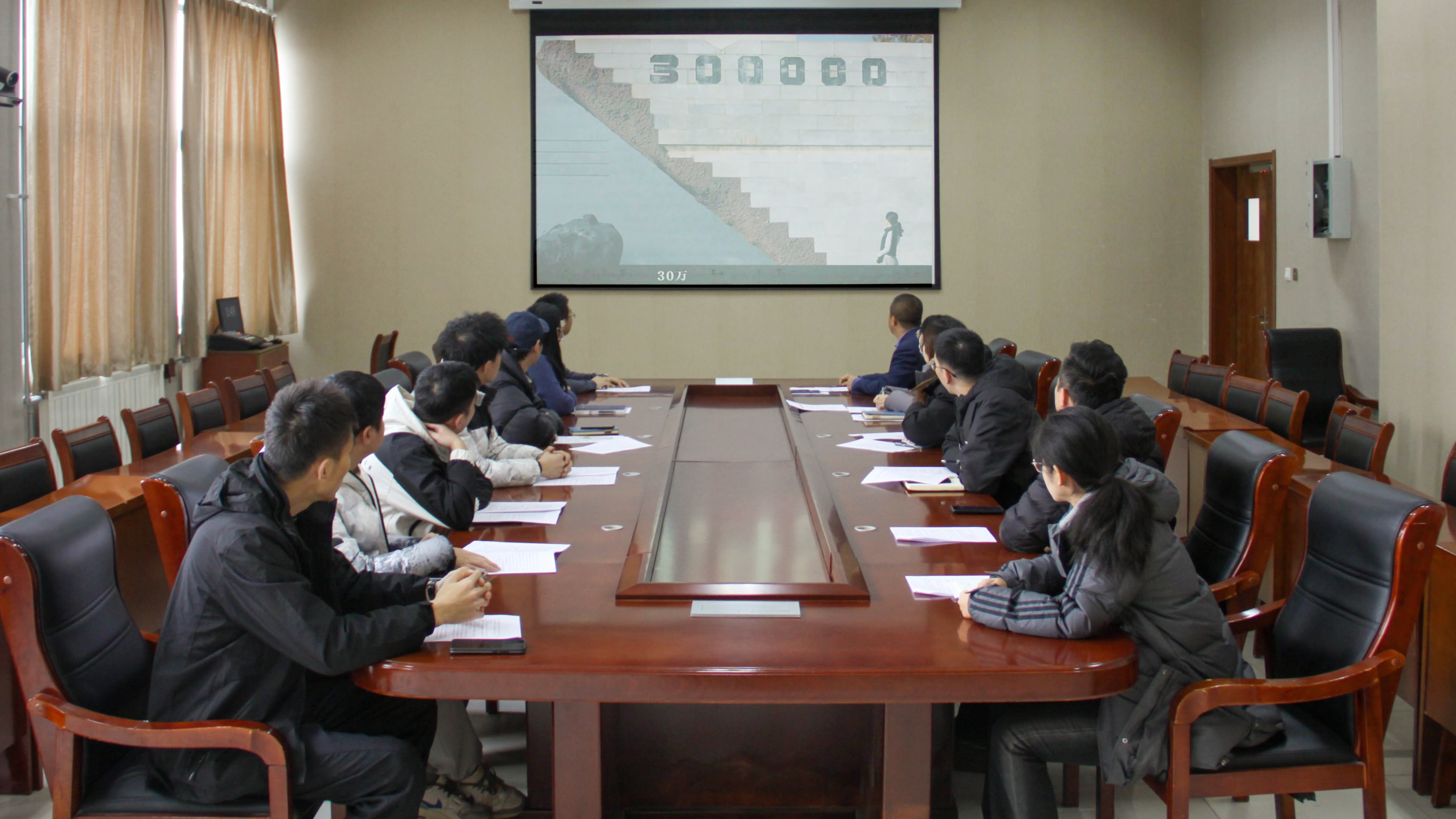 征兵座谈动员会开始前,到会全体师生怀着无尽的敬意,共同观看国家公祭日教育励志短片。通过观看视频,师生们直观地感受到日本侵略战争给中国人民带来的巨大灾难,激发了师生的爱国热情,强化历史责任感与使命感。