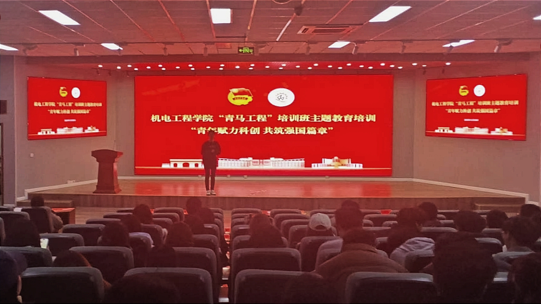 12月17日,机电工程学院“青马工程”培训班在学院530会议室开展了“青年赋力科创,共筑强国篇章”主题教育培训。“青马工程”培训班学员参会,周韫涵老师主持会议。