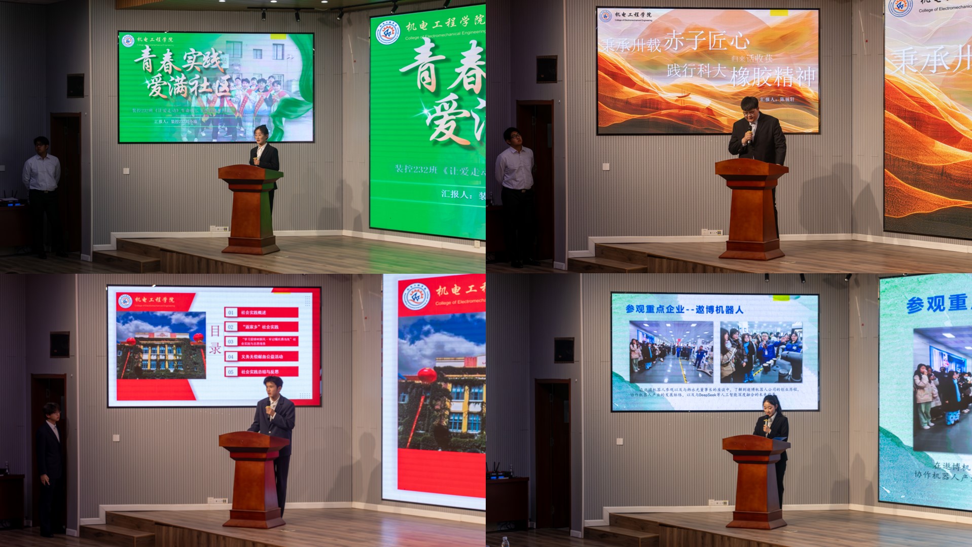此次社会实践分享答辩会不仅帮助同学们梳理了实践成果、交流了经验,也进一步增强了青年学生的社会责任感和实践能力。接下来,机电工程学院将继续深化实践育人体系,结合学院学科特色与社会需求,创新社会实践模式,打造特色鲜明、影响广泛的社会实践品牌,引导青年学子在祖国需要的地方绽放青春光彩,以实际行动践行“请党放心,强国有我”的铮铮誓言!(一审:李亚杰,二审:周韫涵,三审:杨小明)