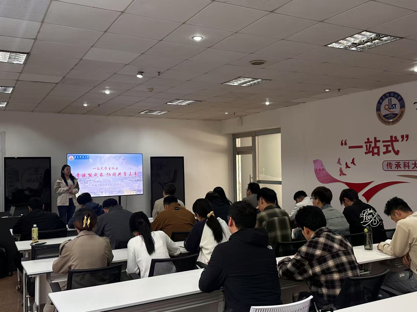 4月23日,机电工程学院在崂山校区“一站式”学生社区服务大厅学业发展中心组织开展“书香赋能成长、协同共育未来”学生工作推进会。全体专兼职辅导员、学生组织代表、党员代表参加会议,会议由辅导员崔瑛主持。