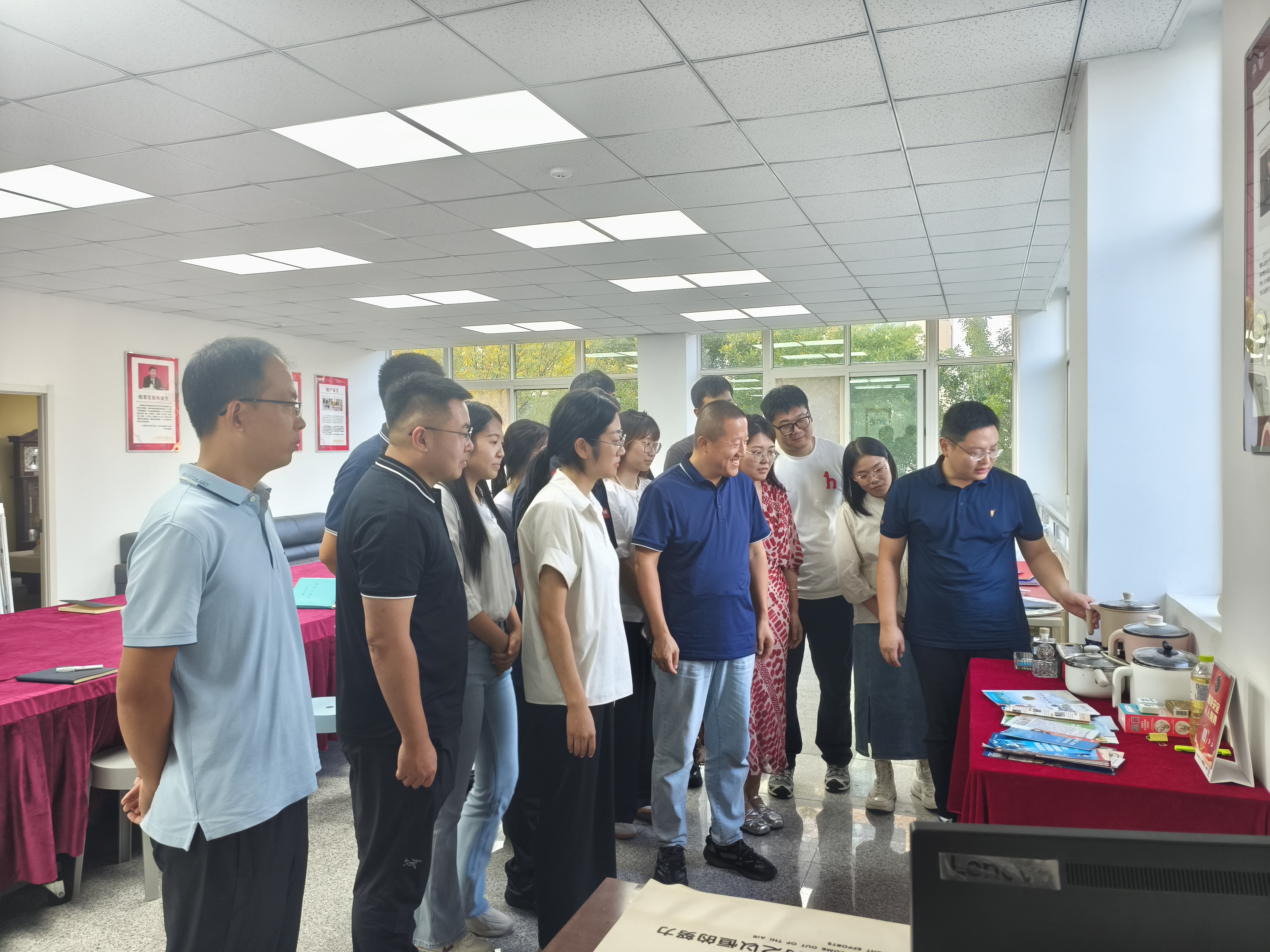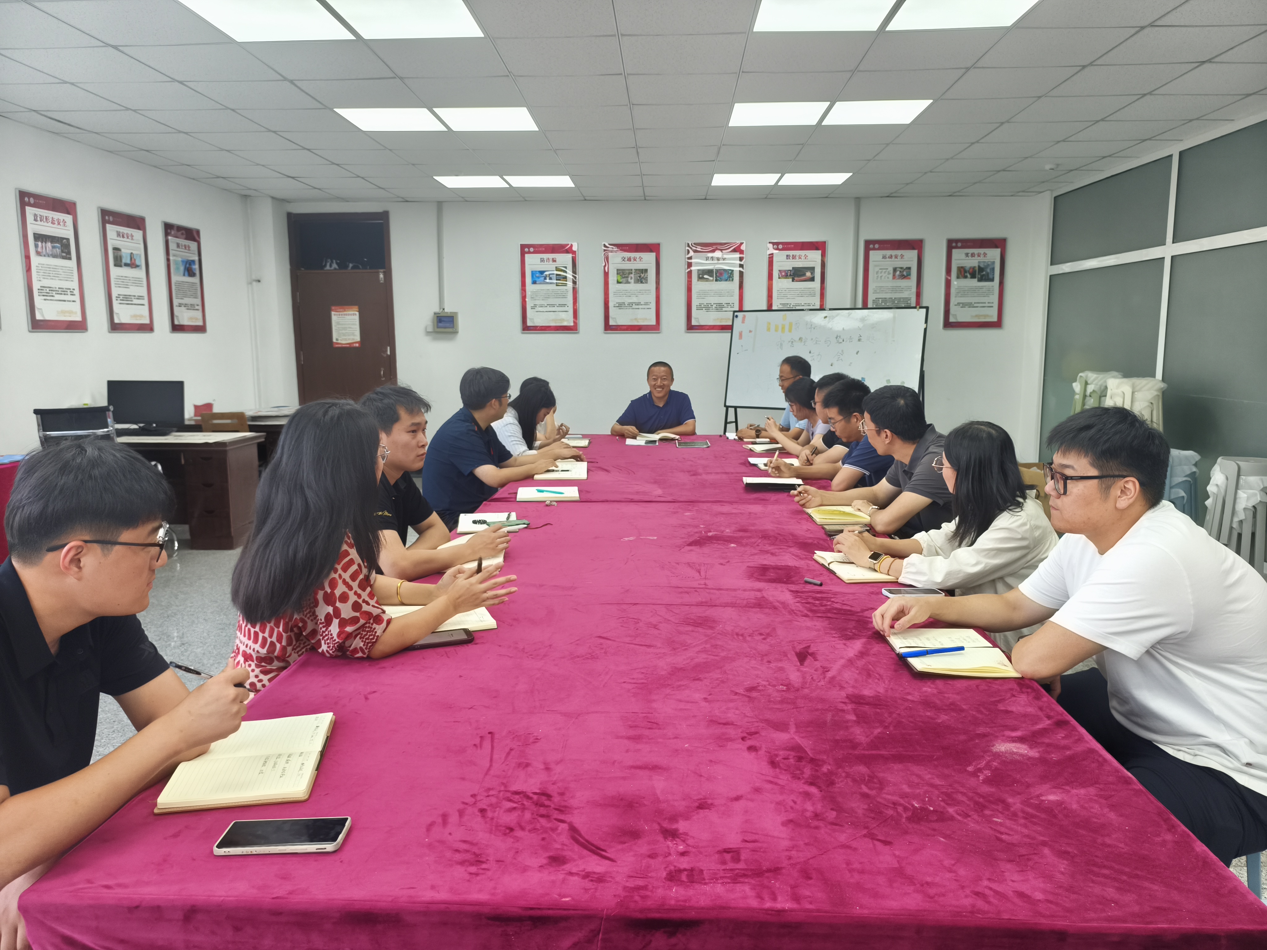 最后,全体辅导员参观了安全卫生宣传教育室,认真学习安全知识手册和防护措施,并就如何将安全卫生教育融入日常进行交流研讨,尤其是推进新生一个不落进行安全宣传教育班会进行部署,安全宣教室共分为科技安全展览-总体安全展-安全小课堂-宿舍危险物品展示-安全视频观看五部分。