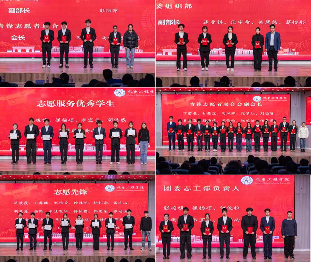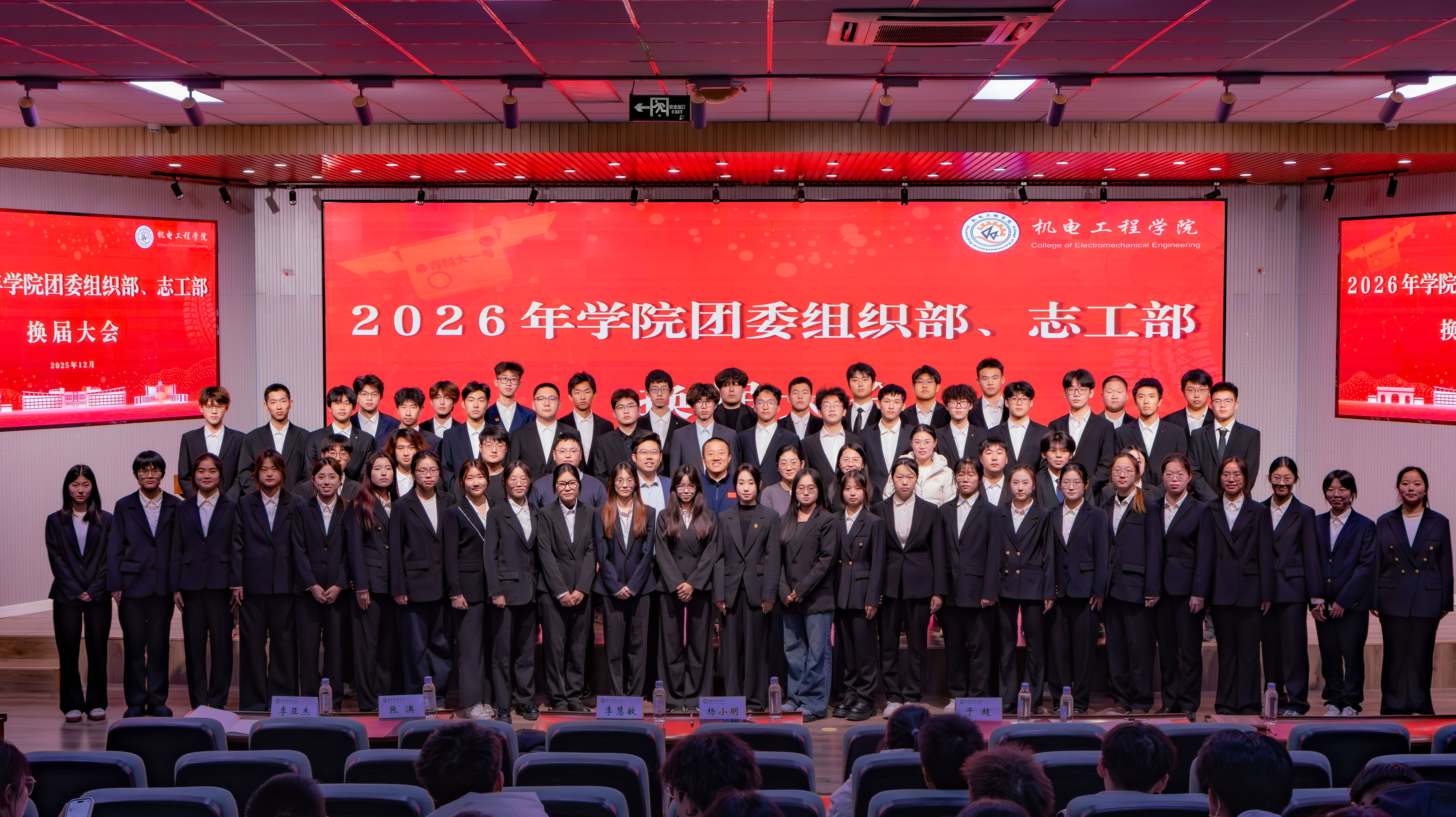 为进一步加强基层团组织建设,提升学生骨干队伍的凝聚力与战斗力,保障团委直属部门工作的高效规范运行,12月2日,机电工程学院团委于机电学院楼D3-530会议室召开团委组织部、志工部2026年度换届暨表彰大会。学院党委副书记兼副院长杨小明,团委副书记李慧敏、于超,学院团委老师及团委组织部、志工部全体成员和学生代表参加会议。