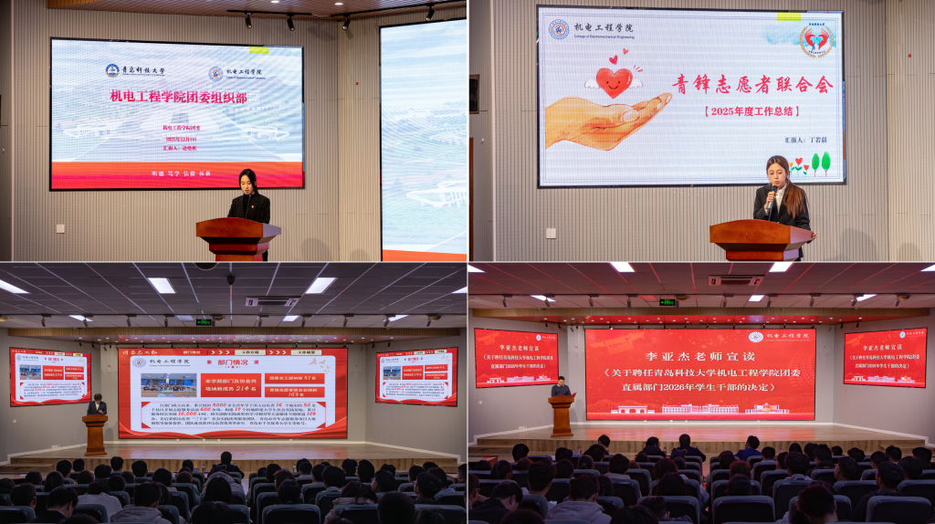 大会宣读了《关于聘任青岛科技大学机电工程学院团委组织部、志工部二〇二六年度学生干部的决定》,并为新一届组织部、志工部及青锋志愿者联合会学生干部颁发聘书。本次换届坚持“公开、公正、择优”的原则,进一步优化了部门人员结构,为学院团学工作注入了新活力。
