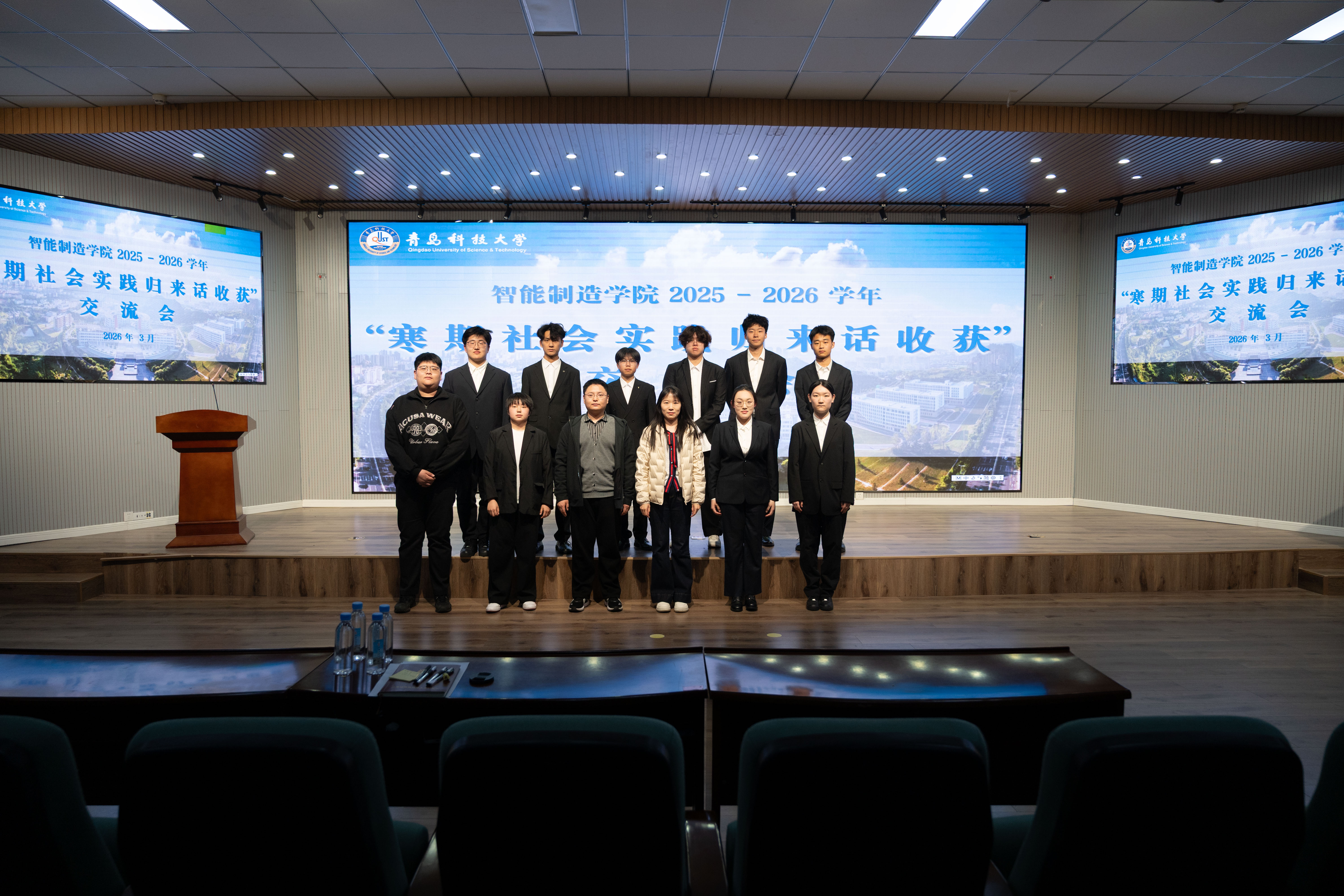 3月18日,智能制造学院团委在崂山校区D3-530会议室举办2026年寒假“实践归来话收获”总结交流会。学院团委陈明月、李亚杰、张笑笑,寒假社会实践杰出团队代表及2025级学生代表共同参会。