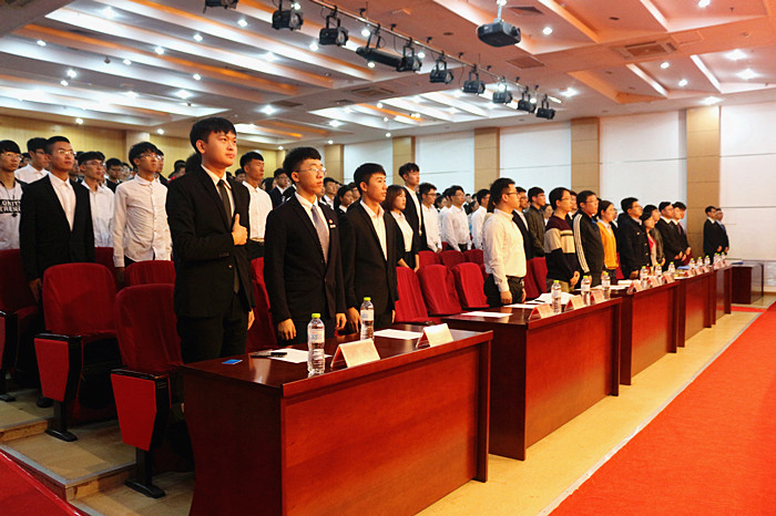 会议在庄严的国歌中正式拉开帷幕。大会第一阶段,首先由第37届学生会主席柯强对去年的学生会工作做了精彩总结,并指出了去年工作上的不足。接着,大会表彰了柯强、姜泽清等优秀学生干部并由王作辉老师给他们颁发了荣誉证书。随后在崂山校区学生会副主席徐港城宣读了组织批复后,大会为第38届学生会主席团成员、各部部长及各协会会长颁发了聘书。由38届学生会主席李大志发表就职演讲,他指出,新一届学生会将不忘初心,认真服务同学和老师。随后,曲智强老师发表讲话,他强调要树立良好的学风作风,与他人团结协作,并肩作战,提高自己的能力与专业素养。大会第二阶段,由李浩老师宣读了文明宿舍活动方案并由王娟娟老师对2017级领航学长进行了表彰及聘任。最后,机电学院党总支副书记王伟老师作了最后总结,希望同学们学生会工作要落到实处,完善学生会的各项规章制度,做好学生和老师之间沟通的纽带。至此,大会圆满落幕。