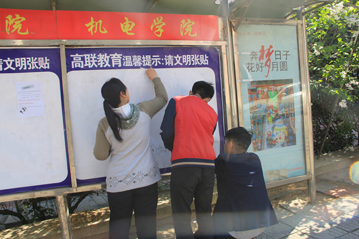 4月22日下午2:00,为贯彻落实“一学一做”方针,增强学生实践能力,青岛科技大学机电学院学生会宣传部展开了针对南苑餐厅附近宣传栏的清理行动。机电学院宣传部成员积极参加了此次活动。