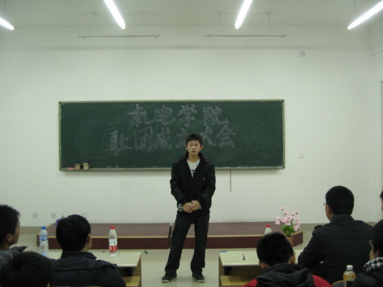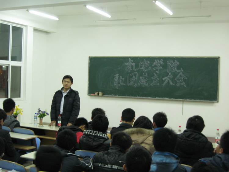 12月15日晚18:00,机电学院在高密校区11号楼205教室举行社团成立大会。机电学院辅导员老师秦洪庆,学生会常务副主席李泽汉,学生会副主席房国胜、李钰鹏、王军,学生会、社团各部门负责人,新成立社团负责人及社团代表参加成立大会。