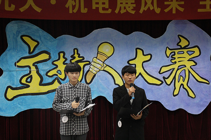 11月2日晚上19:00,由机电学院学生会传媒部主办的机电学院主持人大赛决赛在南苑大学生活动中心举行。机电学院秘书长曲智强老师、分团委李浩老师、学生会副主席王笑东、学生会督导何进等担任本次大赛的评委。