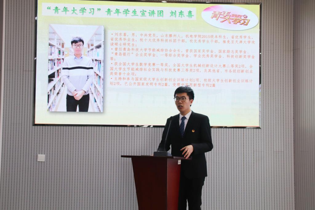 为深入学习贯彻习近平新时代中国特色社会主义思想和党的十九大精神、团的十八大精神,推动青年大学习,加强学院“青年马克思主义者培养工程”,3月26日下午,青年大学习宣讲团校园宣讲会暨机电学院“青年大学习 建功新时代”青马工程培训活动在机电楼530会议室顺利举办。材料学院张旭同学、机电学院刘东喜同学、经管学院王景雯同学依次发表演讲,会议由机电学院分团委老师苗清主持,分团委老师孙坤岩、学生会主要干部、学生主要团干部参加了此次活动。