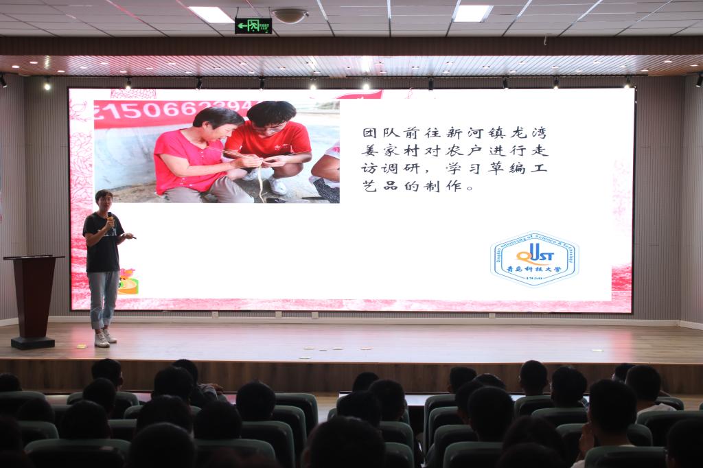机电工程学院学生委员会主席罗浩宇作上台进行汇报结合自己的亲身经历和所见所闻,告诉同学们要全面发展,提升综合素质和社会实践能力,在三下乡中增长阅历,锻炼能力。最后,机电工程学院2019年暑期三下乡优秀团队部分代表上台进行暑期社会实践成果展示,他们的经历引起了现场同学的关注,激发了同学们投身社会实践的兴趣。