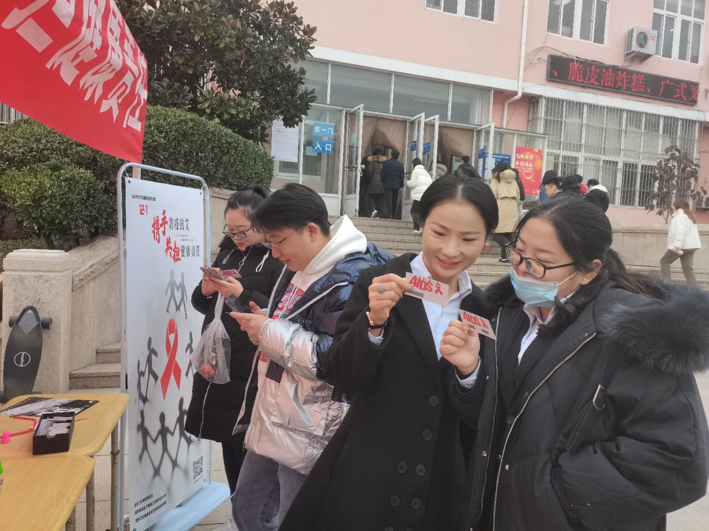 携手防疫抗艾,共担健康责任。2020年12月1日是第33个世界艾滋病日,在全球抗击疫情的背景之下,为应对新冠肺炎疫情和艾滋病的重大挑战,青岛科技大学机电工程学院团委志工部青尘义工队于南苑餐厅东门举办了“爱在心中,艾在寒冬”主题竞答活动。