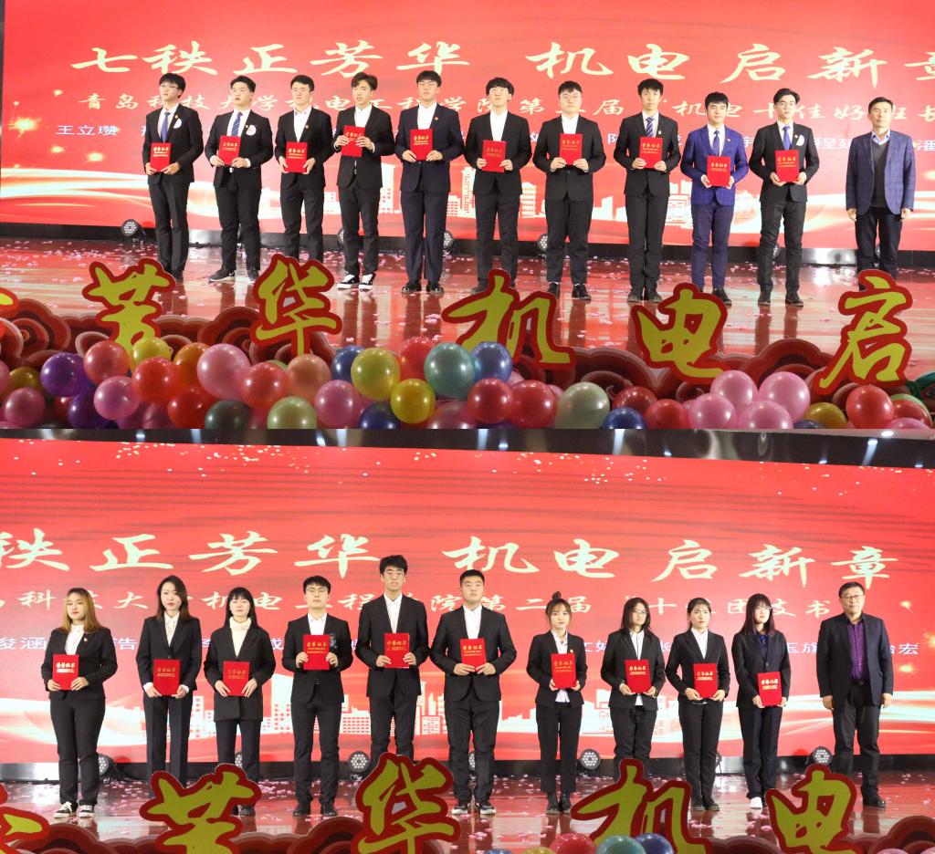 典礼表彰了机电学子在学风建设、科技创新、志愿服务等方面取得的傲人成绩;肖强和王作辉分别为机电学院“十佳好班长”和“十佳团支书”获得者颁奖,并鼓励学生坚定理想信念,不断开拓创新。