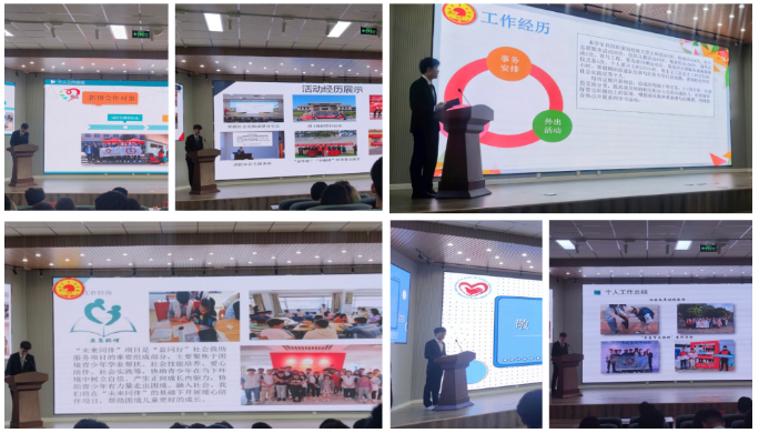 机电学院志愿者们踏实志愿,开拓创新,本学年累计志愿服务时长已达8256小时,展现了机电学子勇于担当、甘于奉献的志愿服务品质。六位竞聘人也从未来规划、紧抓实效等方面展开竞聘演讲,让我们对志工部未来的发展充满信心和期待。