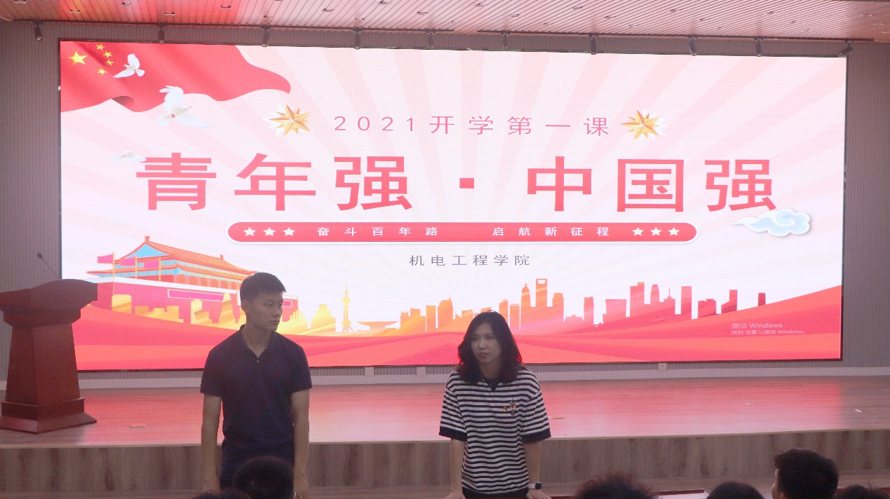 新学期伊始,机电学院组织2018级师生同上开学第一课,围绕“青年强·中国强”主题开展党史学习教育。