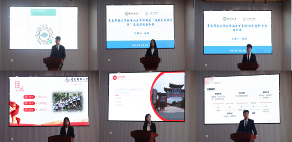 本次分享会共邀请了青岛科技大学“传承红色基因,矢志接续奋斗”调研实践团等六支优秀团队和青鸟计划实践个人,各实践团队就选题背景、实践过程、团队总结、不足与建议等方面展开八分钟的展示。汇报内容丰富,形式多样,讲述了实现个人价值、传承红色基因、弘扬非遗文化、服务乡村振兴、致力教育帮扶、共守绿水青山等实践内容。实践团队纷纷表示在社会实践的过程中强化了自己的责任感和服务精神,在实践分享会上不仅毫无保留的向新同学分享实践经验,并且认真学习其他团队的闪光点,弥补自身的不足。