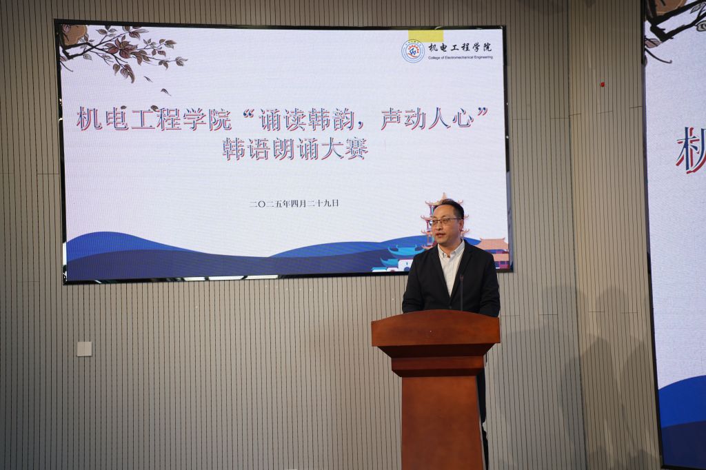 韩韵悠悠耳畔响,诗风缕缕润心田。2025年4月29日下午,机电工程学院成功举办“诵读韩韵,声动人心”第一届韩语朗诵大赛。此次大赛旨在提升学生韩语水平,激发韩语学习兴趣,吸引了机械工程(中韩合作办学)专业、材料成型及控制工程(中韩合作办学)专业学生的广泛参与。机电工程学院副院长李剑光、合作办学办公室主任付平、中韩合作办学师生代表80余人参加此次活动。韩语教师刘雪云、马敏、李静作为本次评委。