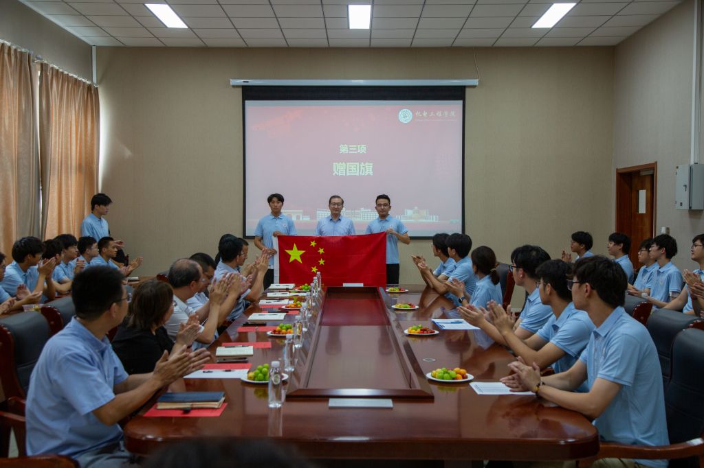 会上,任允晓为留学生代表赠予国旗,与会领导为全体赴韩同学颁发“动力礼包”,出国留学生代表杨桐发言,表达了赴韩留学的初心使命、铿锵誓言。