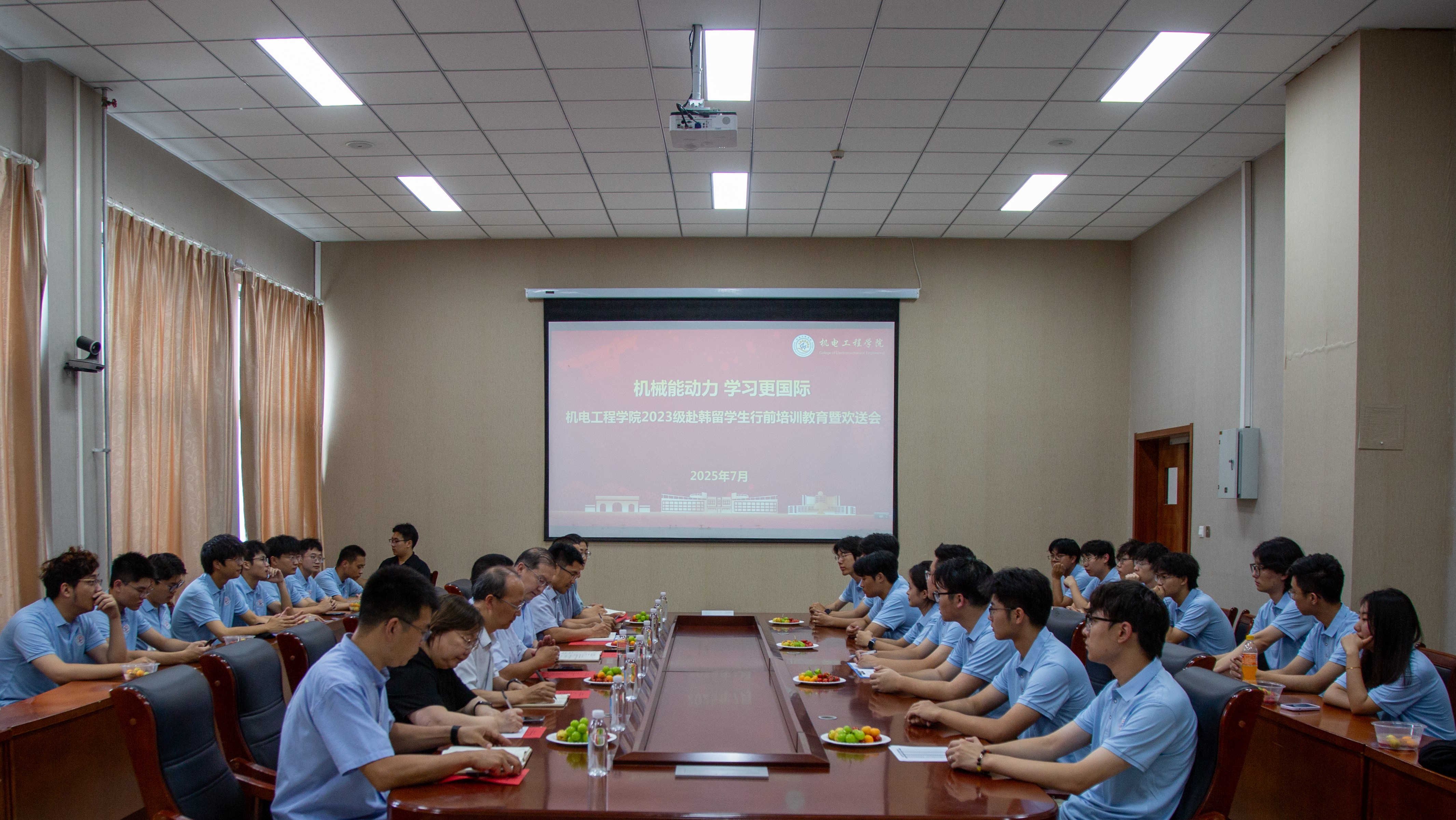 7月21日,机电工程学院2023级赴韩留学生行前教育暨欢送会在机电楼518会议室举行。学院党委书记任允晓、党委学生工作部副部长李春家、国际处副处长宋飞、学院副院长杨化林、教师代表付平、辅导员李慧敏、杜康及23级出国留学生参加会议。学院党委副书记兼副院长杨小明主持会议。